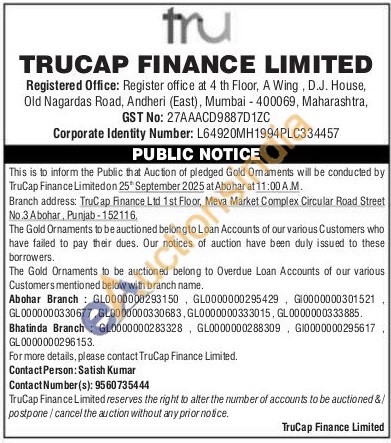 TruCap Finance Ltd Gold Auctions Auction in Punjab