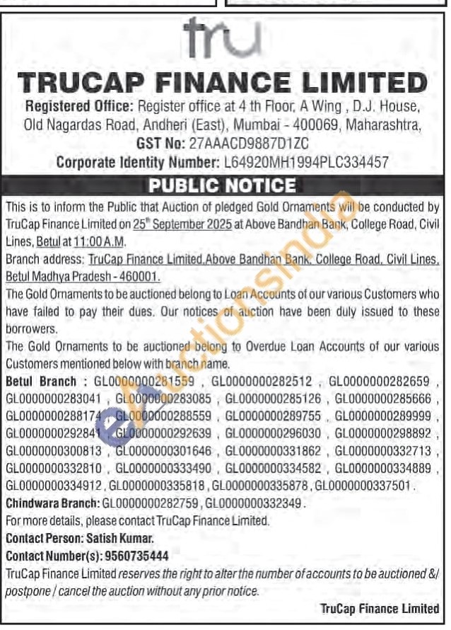 TruCap Finance Ltd Gold Auctions Auction in Betul