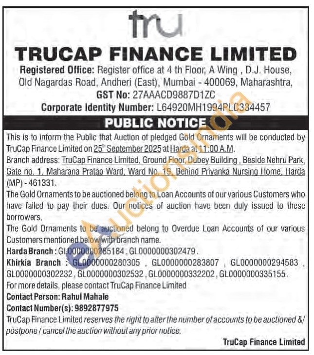 TruCap Finance Ltd Gold Auctions Auction in Harda