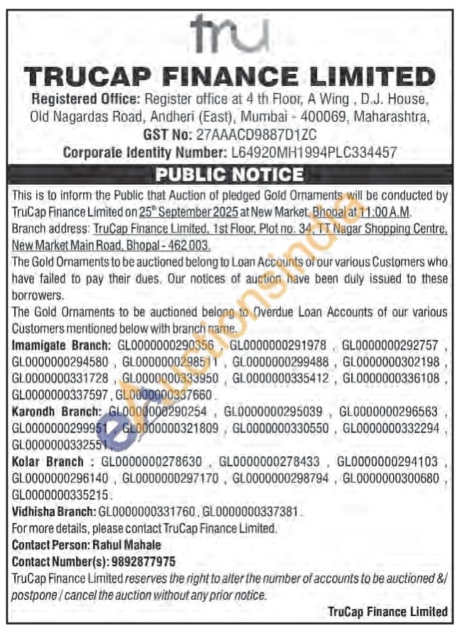 TruCap Finance Ltd Gold Auctions Auction in Bhopal