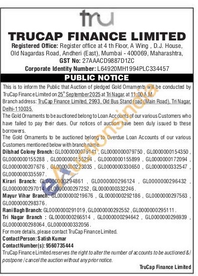 TruCap Finance Ltd Gold Auctions Auction in New Delhi