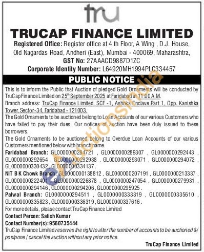 TruCap Finance Ltd Gold Auctions Auction in Faridabad