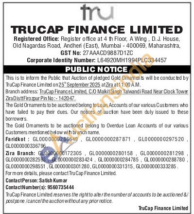 TruCap Finance Ltd Gold Auctions Auction in Firozpur