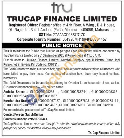 TruCap Finance Ltd Gold Auctions Auction in Kurukshetra