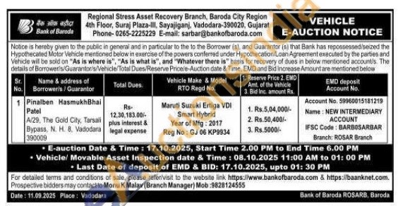 Contact Phone-0265-2225229 E-mail: sarbar@bankofbaroda.com