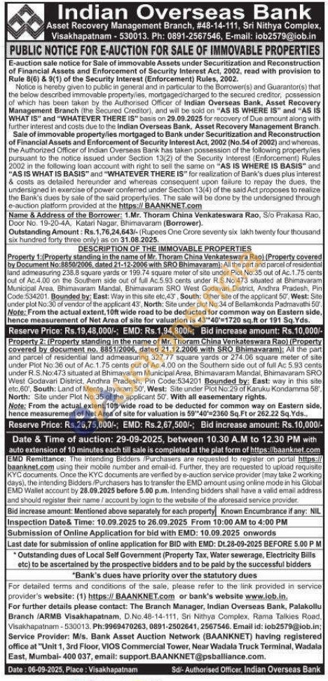 All the part and parcel of residential land admeasuring 327.77 square yards or 274.06 square meter of site under Plot No:36 out of Ac. 1.75 cents out of Ac. 4.00 on the Southern side out of full Ac 5.93 cents under R.S.No:473 situated at Bhimavaram Municipal Area, Bhimavaram Mandal, Bhimavaram SRO West Godavari District, Andhra Pradesh, Pin Code: 534201 Bounded by: East: way in this site etc, 60', South: Land of Mente Jayaram 50', West: Site under Plot No:29 of Karuku Kondamma 58, North: Site under Plot No:35 of the applicant 50. With all easementary rights.