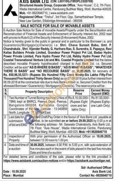 Two Number of Tunnel Boring machine (2 Nos of TBM) kept at BMRCL Peenya Depo, Peenya. Bangalore-560058, Karnataka. Google Coordinates of the Site: Latitude: 13:040859 North, Longitude: 77.535964 East