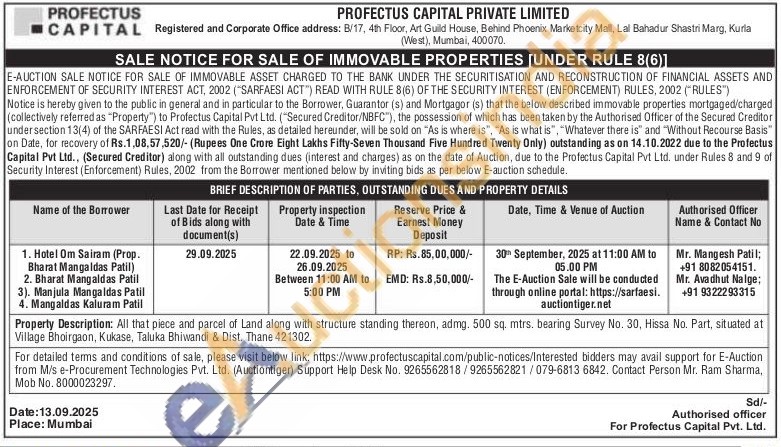 Property Description: All that piece and parcel of Land along with structure standing thereon, admg. 500 sq. mtrs. bearing Survey No. 30, Hissa No. Part, situated at Village Bhoirgaon, Kukase, Taluka Bhiwandi & Dist. Thane 421302.