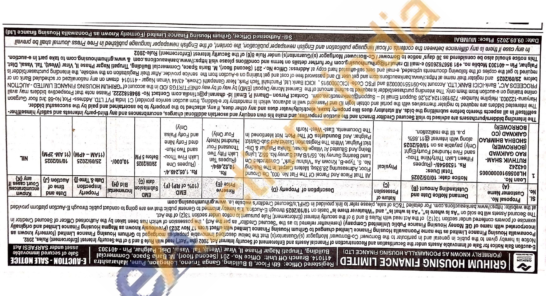 All That Piece And Parcel Of The Flat No. 003, On Ground Floor, Admeasuring 28.93sq. Meters Carpet, In The Building No. 5, Type-B, Known As "Vishnu Park", Constructed On Land Bearing Survey No. 55/1/B And Survey No. 55/2, Lying Being And Situated At Village Boisar, Taluka Palghar & Dis-trict Palghar, Within The Registration District And Sub-District Palghar. And Boundarles Of The Plot: Not Mentioned In The Documents. East-West-North