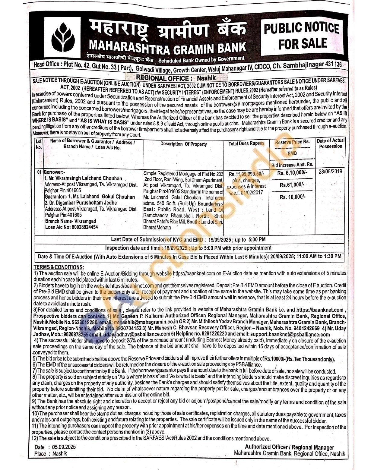 Mr. Ganesh P. Kulkarni Authorized Officer Mobile No. 9623012280