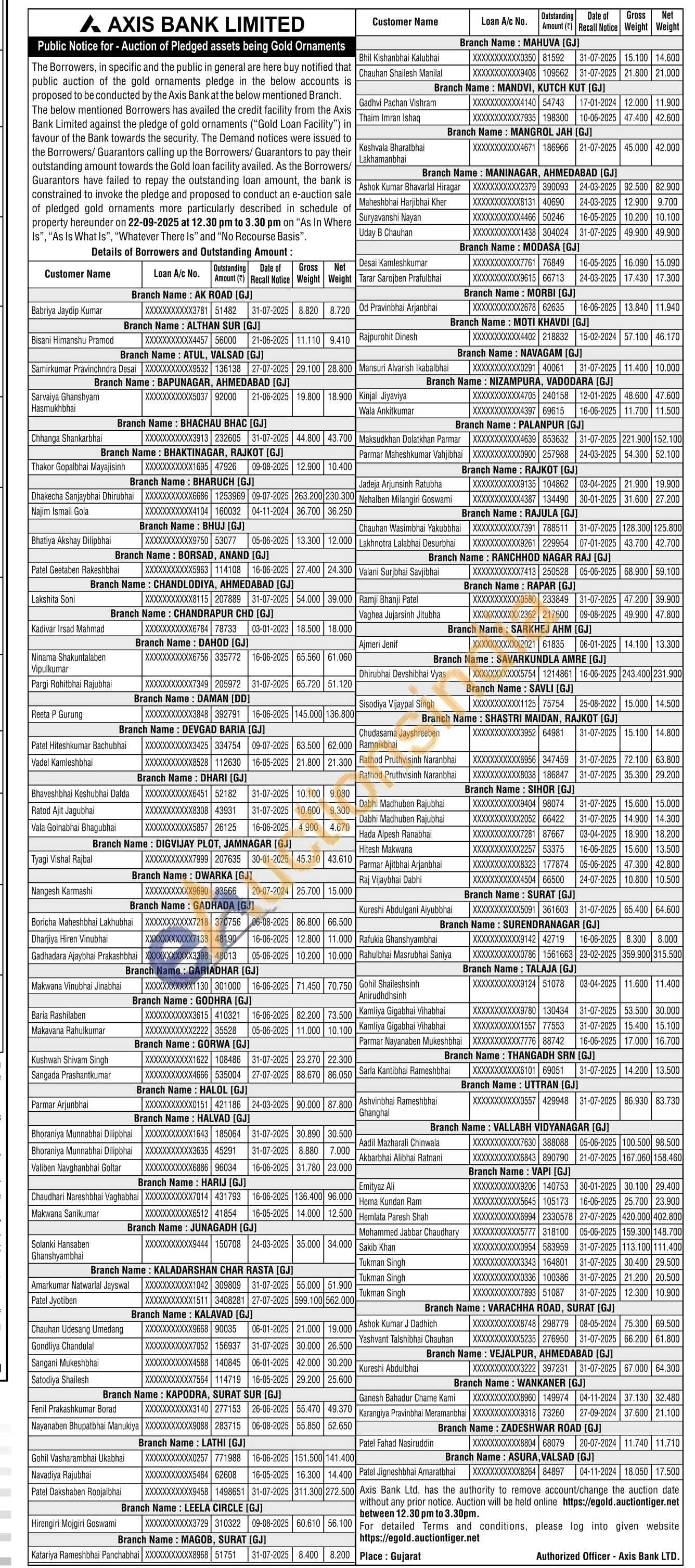 Axis Bank Gold Auctions Auction in Valsad