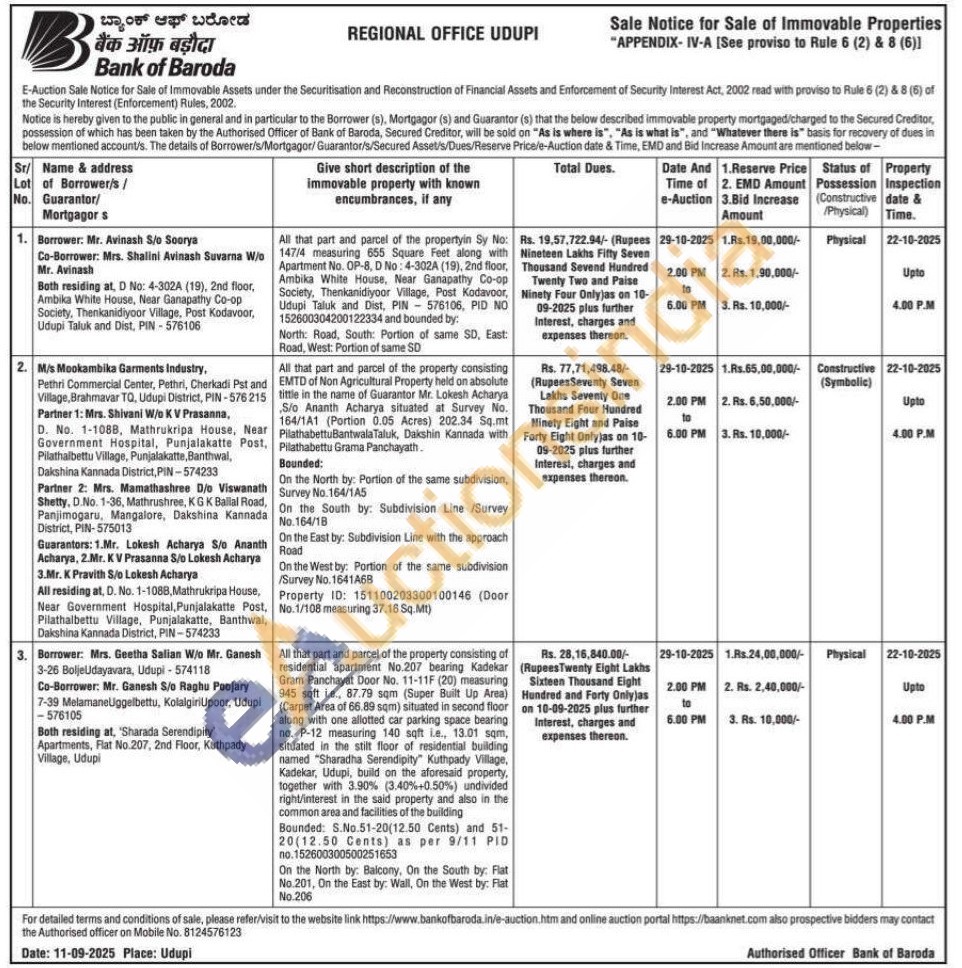 All that part and parcel of the propertyin Sy No: 147/4 measuring 655 Square Feet along with Apartment No. OP-8, D No: 4-302A (19), 2nd floor, Ambika White House, Near Ganapathy Co-op Society, Thenkanidiyoor Village, Post Kodavoor, Udupi Taluk and Dist, PIN 576106, PID NO 152600304200122334 and bounded by: North: Road, South: Portion of same SD, East: Road, West: Portion of same SD