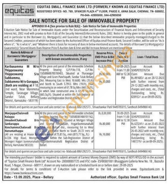 All the piece and parcel of the immovable Schedule Property bearing G.P.P.No.118, GP.NG 150500600700700403, Situated at Tharanagar Village and Gram Panchayath, Sandur Taluk Bellary Dist. Measuring East to West. 10.6680. Mts (35.FU and North to South 5.7912. Mtrs (19.Ft), Tosal measuring to an extent of 61.78 Sq.Mtrs (565.5q.R), in which total constructed area is 61.78 5qmtrs (665 Sq Ft). Situated at within the Sub-Registrar of Sandur and Registration District of Bellary