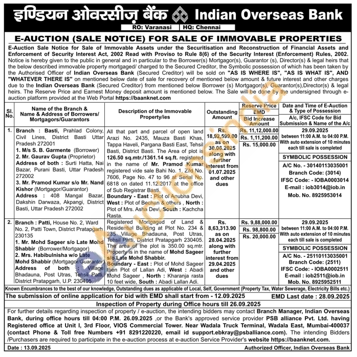 Contact E-mail: iob3014@iob.in Mob. No. 8925953014