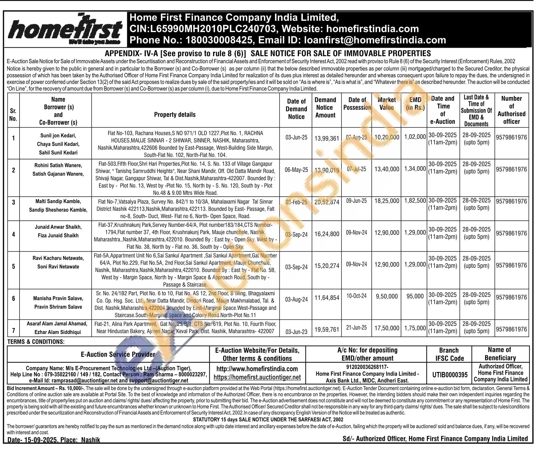 Flat No-7, Vatsalya Plaza, Survey No. 842/1 to 10/3A, Mahalaxami Nagar Tal Sinnar District Nashik 422113, Nashik, Maharashtra, 422113. Bounded by East- Passage, Falt no-8, South-Duct, West-Flat no 6, North- Open Space, Road.