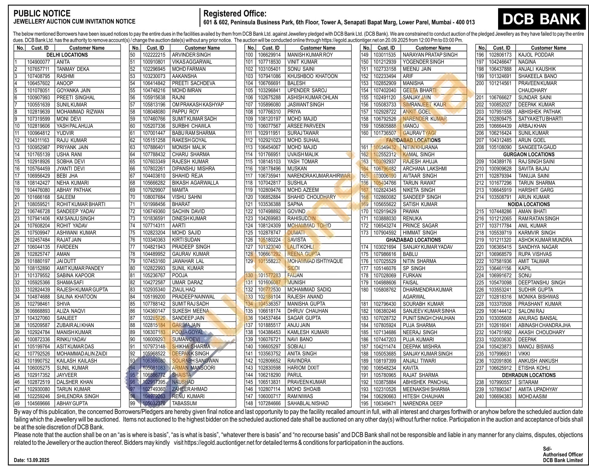 DCB Bank Gold Auctions Auction in Mumbai