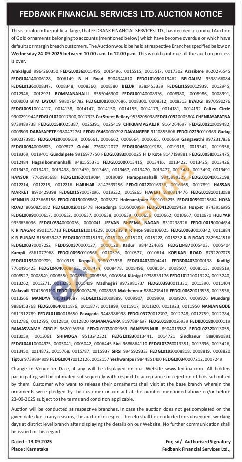 Fedbank Financial Services Ltd Gold Auctions Auction in Davanagere
