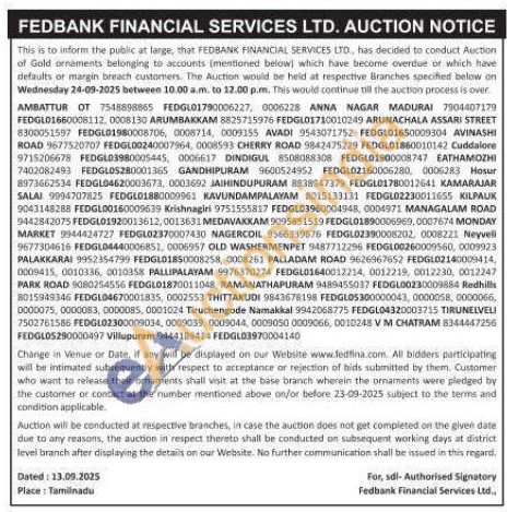 Fedbank Financial Services Ltd Gold Auctions Auction in Davanagere