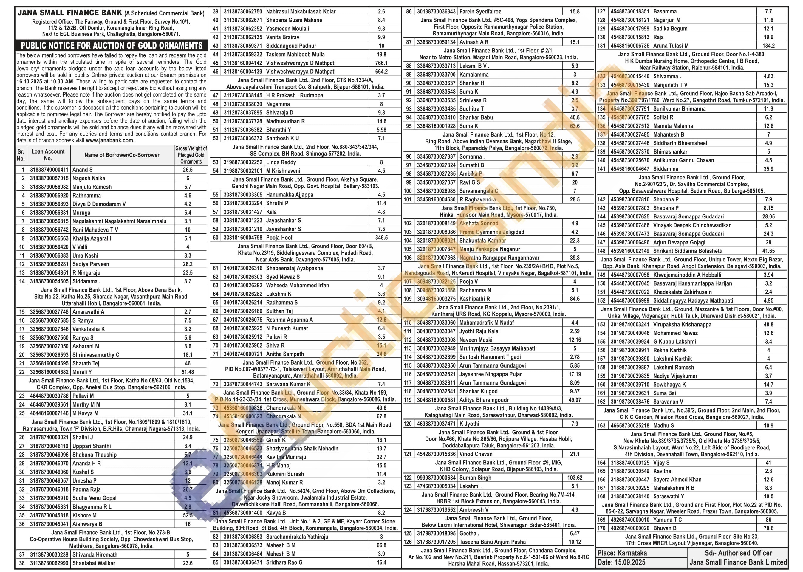 Jana Small Finance Bank Gold Auctions Auction in Bengaluru