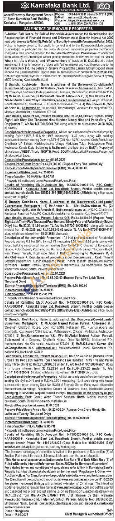 1) All that part and parcel of residential property bearing Sy.No. 106/2 & R.S.No. 119/2, measuring 14.47 cents along with building constructed thereon bearing Door No.32/116 (Old No. 14/275), Aravind Gosh Road, Near Chatliyath UP School, Nadakkuthazhe Village, Vadakara Taluk, Paduppanam Post Kozhikode, Kerala State belonging to Mr.Balan N. and bounded by, EAST: Property of Mr.Narayani; WEST: Thodu: NORTH: Road, SOUTH: Mundakkal Parambu, Property of Mr. Mundakkal Babu.