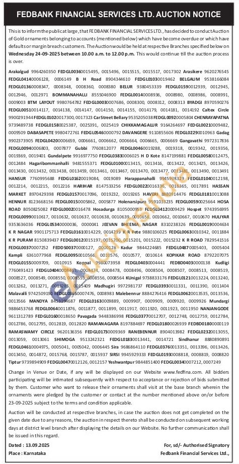Fedbank Financial Services Ltd Gold Auctions Auction in Belagavi