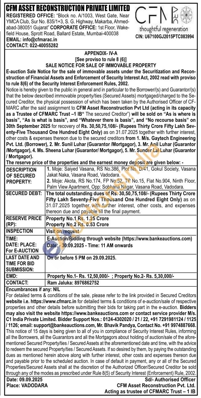 1. Moje: Saiyed Vasana, RS No.386, Plot No. D/41, Gokul Society, Vasana Jakat Naka, Vasana Road, Vadodara
