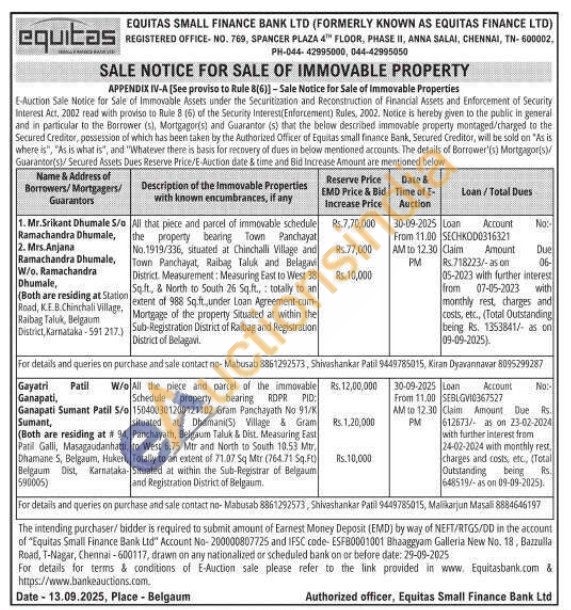 All the piece and parcel of the immovable Schedule property bearing ROPR PID 150400301200121102 Gram Panchayath No 91/K situated at Dhamani(5) Village & Gram Panchayath, Belgaum Taluk & Dist. Measuring East to West 6.75 Mtr and North to South 10.53 Mtr. Totally to an extent of 71.07 Sq Mtr (764.71 Sq. FO Situated at within the Sub-Registrar of Belgaum and Registration District of Belgaum
