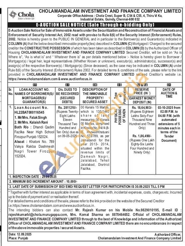 00 Kanals 15 Marlas, which is 135/1440 share of land measuring 08 Kanals 00 Marlas, comprised in Khasra No. 94//4 (8-0), Khewat/Khatuani No. 578/789, as per Jamabandi for the year 2013-2014, situated within the revenue limits of Damesh Nagri, Jalalabad, Tehsil Jalalabad, District Fazilka