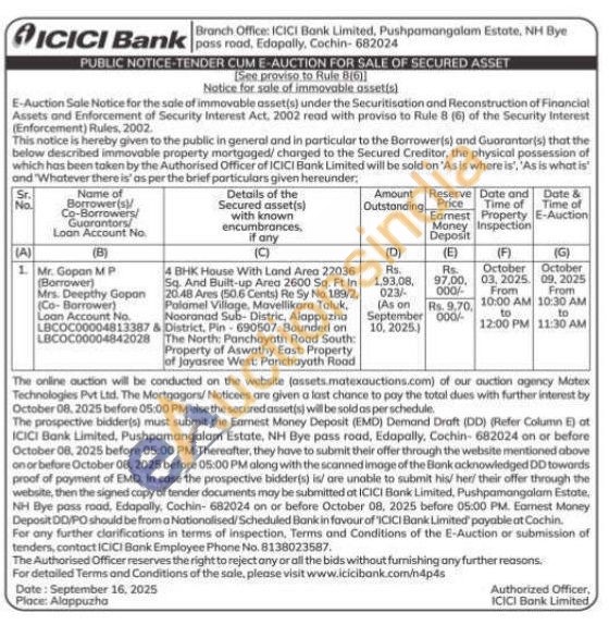 4 BHK House With Land Area 22036 Sq. And Built-up Area 2600 Sq. Ft In 20.48 Ares (50.6 Cents) Re Sy No. 189/2, Polamel Village, Mavellikara Taluk, Nooranad Sub-Distric, Alappuzha District, Pin-690507. Bounded on The North: Panchayath Road South: Property of Aswathy East: Property of Jayasree West: Panchayath Road