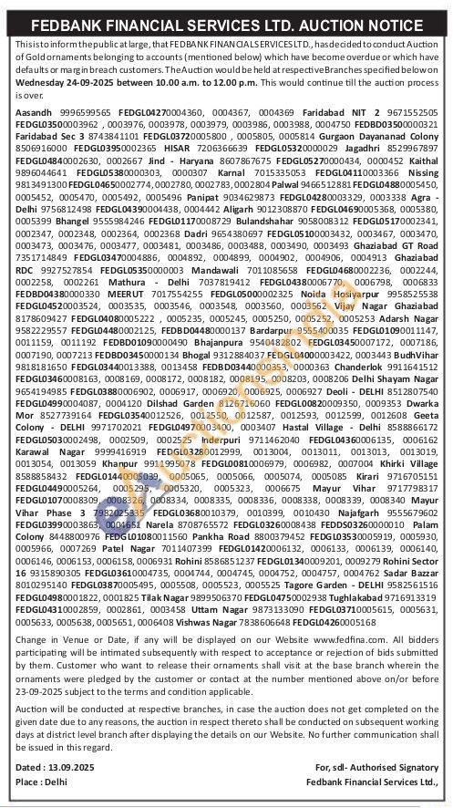 Fedbank Financial Services Ltd Gold Auctions Auction in New Delhi