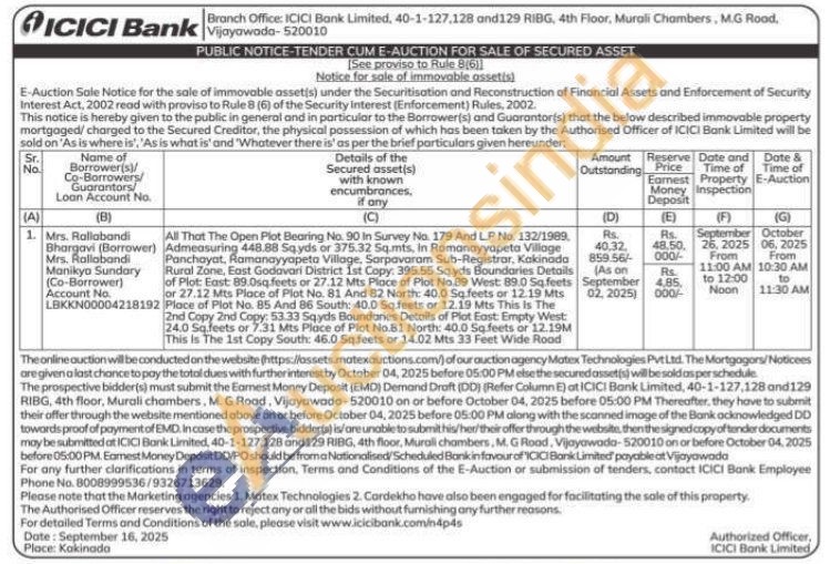 The Open Plot Bearing No. 90 In Survey No. 179 And L.P No. 132/1989 Admeasuring 448.88 Sqyds or 375.32 Sq.mts. In Ramanayyapeta Village Panchayat, Ramanayyapeto Village, Sarpavaram Sub-Registrar, Kakinada Rural Zone, East Godavari District 1st Copy: 395.55 Sq.yds Boundaries Details of Plot: East: 89.0sq.feets or 27.12 Mts Place of Plot No. 89 West: 89.0 Sq.feets or 27.12 Mts Place of Plot No. 81 And 82 North: 40.0 Sq.feets or 12.19 Mts Place of Plot No. 85 And 86 South: 40.0 Sq feets or 12.19 Mts This Is The 2nd Copy 2nd Copy: 53.33 Sqyds Boundaries Details of Plot East: Empty West 24.0 Sq feets or 7.31 Mts Place of Plot No.81 North: 40.0 Sq.feets or 12.19M This Is The 1st Copy South: 46.0 Sq. feets or 14.02 Mts 33 Feet Wide Road