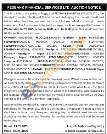 Fedbank Financial Services Ltd Gold Auctions Auction in Fatehpur