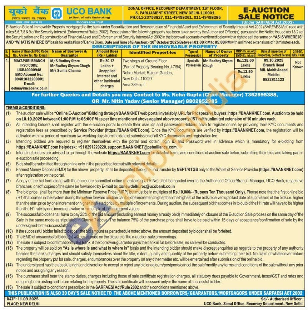 Two shops at Ground Floor (Part of Property Bearing No.J-7/94) Nehru Market, Rajouri Garden, New Delhi-110027 Area 389 sq ft