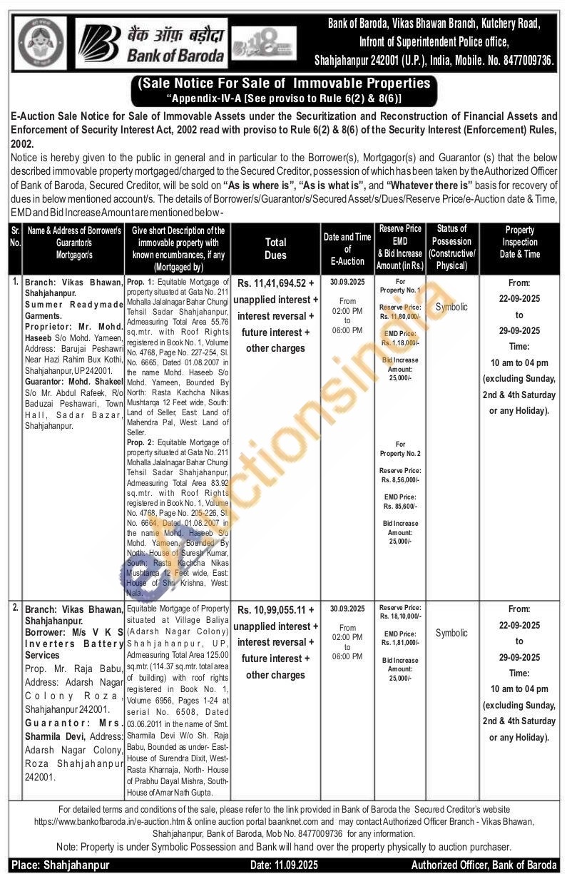 Equitable Mortgage of property situated at Gata No. 211 Prop. 1: Equitable Mortgage of Mohalla Jalalnagar Bahar Chungi Tehsil Sadar Shahjahanpur, Admeasuring Total Area 55.76 sq.mtr. with Roof Rights registered in Book No. 1, Volume No. 4768, Page No. 227-254, SI . No. 6665, Dated 01.08.2007 in the name Mohd. Haseeb Slo Mond. Yameen, Bounded By North Rasta Kachcha Nikas Mushtarga 12 Feet wide, South: Land of Seller East Land of Mahendra Pal, West Land of Seller.