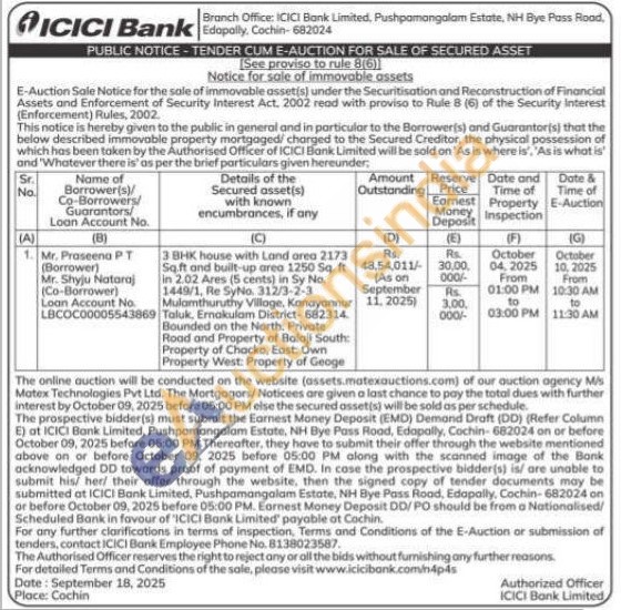 3 BHK house with Land area 2173 Sq.ft and built-up areo 1250 Sq. ft In 2.02 Ares (5 cents) in Sy No. 1449/1, Re SyNo. 312/3-2-3 Mulamthuruthy Village, Kanayannur Taluk, Ernakulam District-682314. Bounded on the North: Private Road and Property of Balaji South: Property of Chacko, East: Own Property West: Property of Geoge