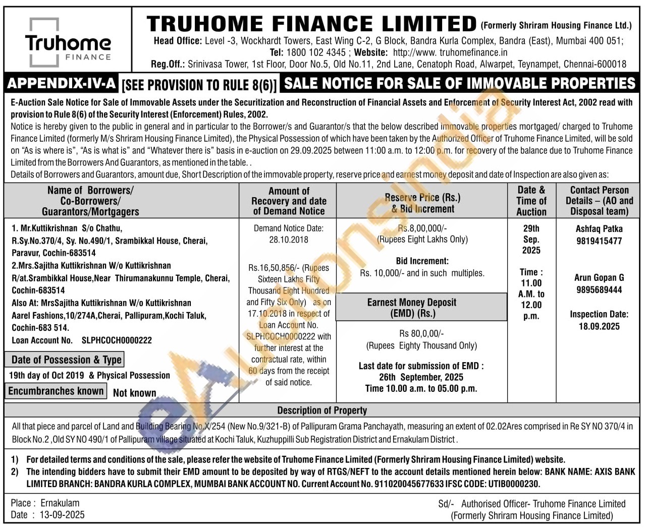 All that piece and parcel of Land and Building Bearing No.X/254 (New No.9/321-B) of Pallipuram Grama Panchayath, measuring an extent of 02.02Ares comprised in Re SY NO 370/4 in Block No.2, Old SY NO 490/1 of Pallipuram village situated at Kochi Taluk, Kuzhuppilli Sub Registration District and Ernakulam District