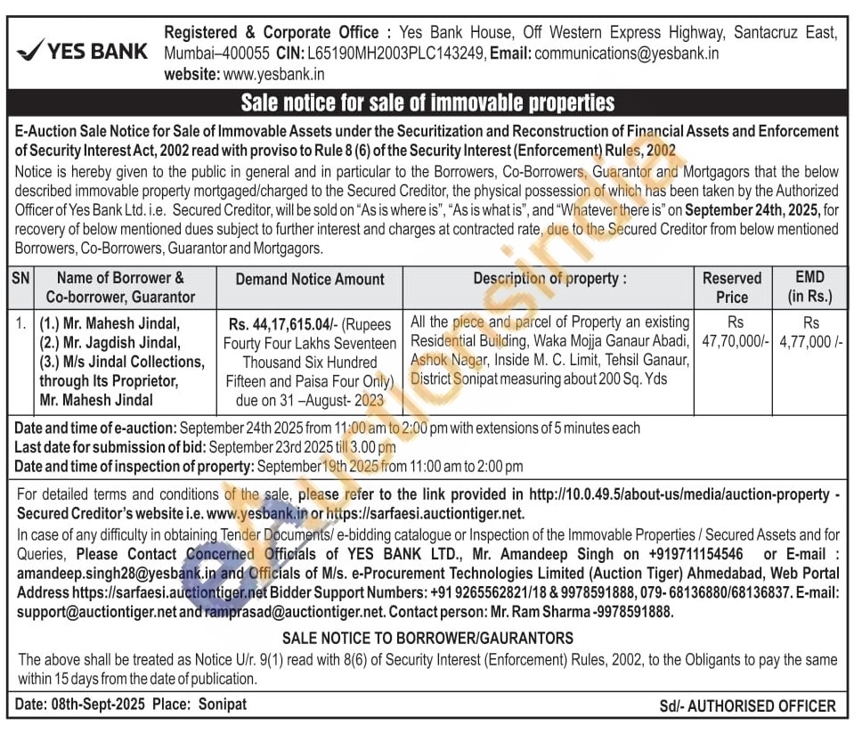 All the piece and parcel of Property an existing Residential Building, Waka Mojja Ganaur Abadi, Ashok Nagar, Inside M. C. Limit, Tehsil Ganaur, District Sonipat measuring about 200 Sq. Yds