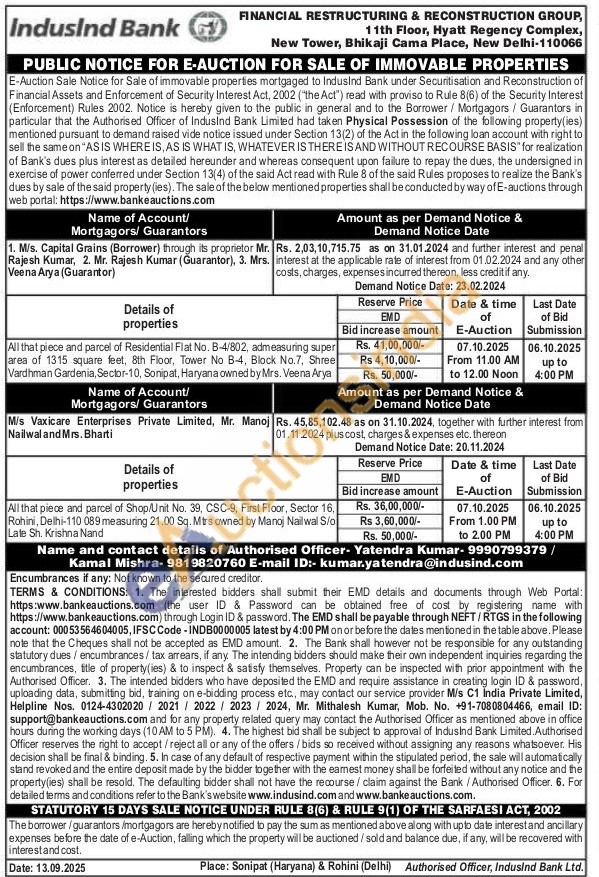 Authorised Officer- Yatendra Kumar- 9990799379 / Kamal Mishra- 9819820760