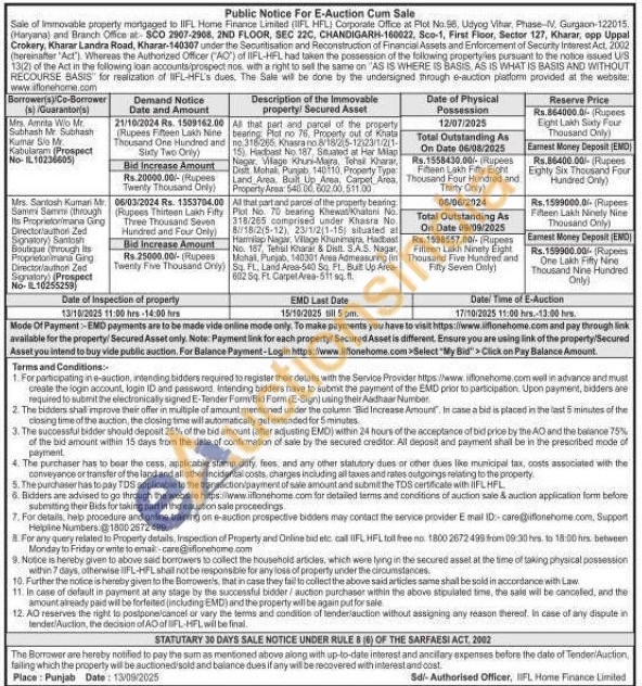 All that part and parcel of the property bearing Plot No. 70 bearing Khewas Khatoni No. 318/265 comprised under Khasra No. 8//18/2(5-12), 23/1/2(1-15) situated at Harmilap Nagar, Village Khunimaira, Hadbast No. 187, Tetisil Kharar & Distt. S.A.S. Nagar, Mahal, Punjab, 140301 Area Admeasuring (in Sq. FL, Land Area-540 Sq. FL., Built Up Area-602 Sq. Ft. Carpet Area-511 sq.ft