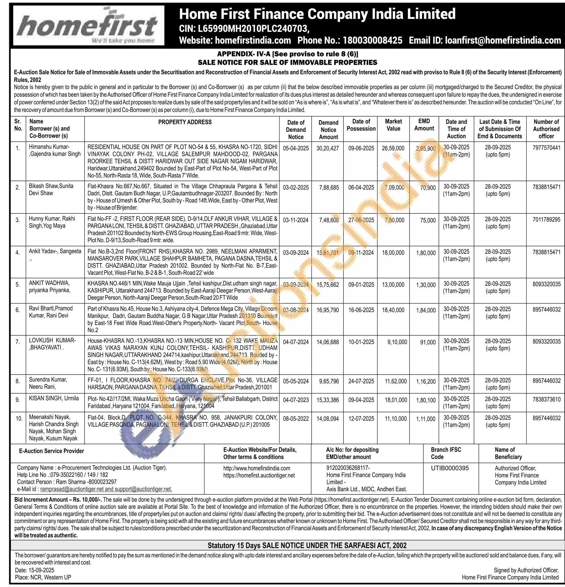 Authorised Officer Contact No : 7838815471