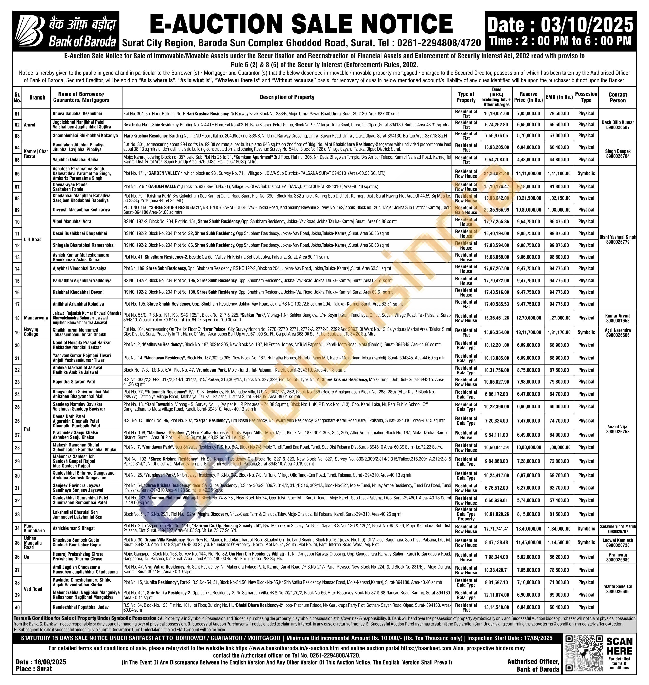 Plot No. 55/G, R.5.No. 191, 193.1948 195/1, Block No. 217 & 225, "Sahkar Park", Vibhag-1.Nr. Sankar Bunglow, th-Soyani Gram Panchayat Office, Soyani Village Road, Tal-Palsana, Surat 394310. Area of plat-70.64 sq.mt. 1.8. 84.44 sq yd. in. 760.00 sq.ft