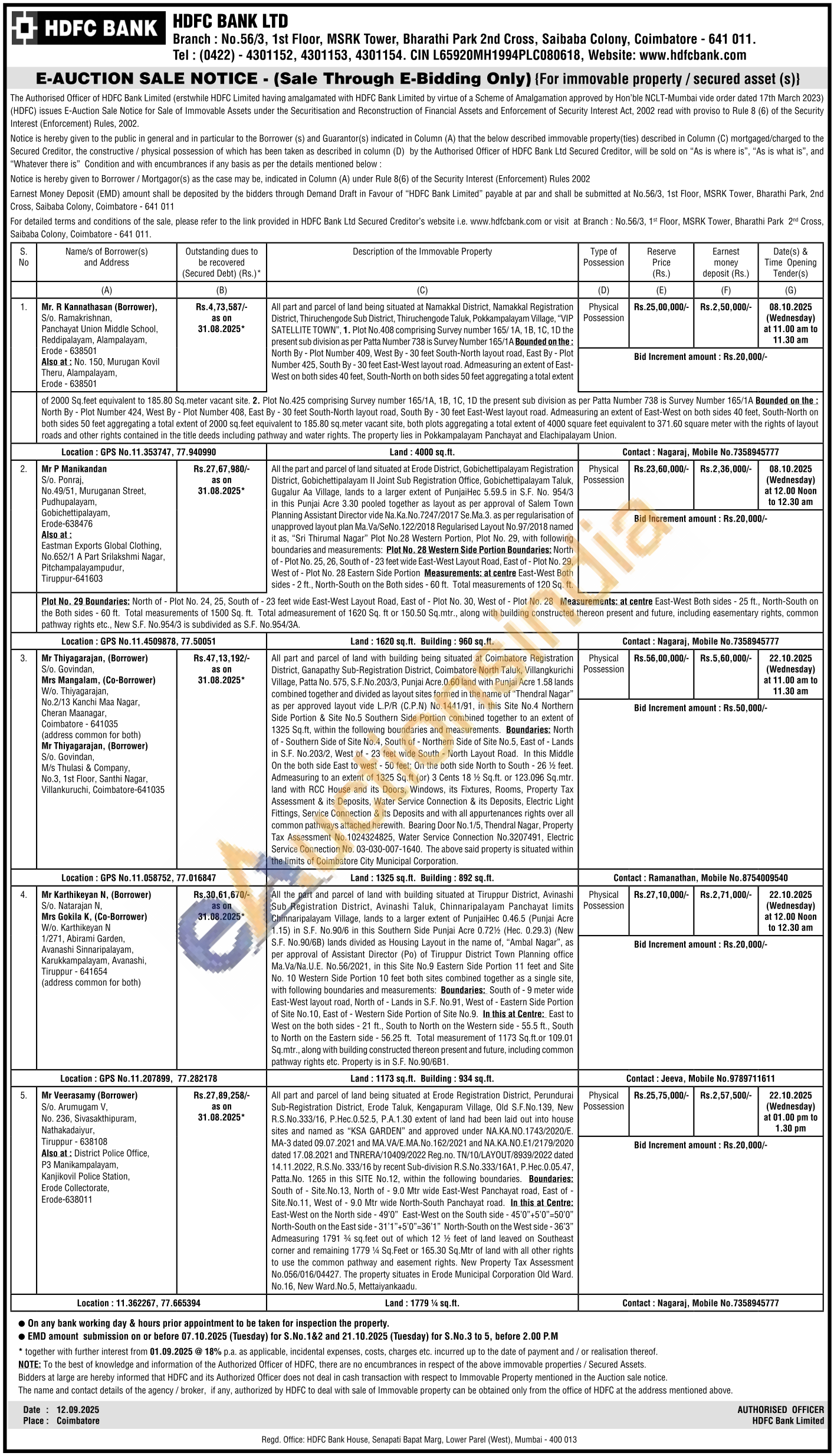 All part and parcel of land being situated at Erode Registration District, Perundurai Sub-Registration District, Erode Taluk, Kengapuram Village, Old S.F.No.139, New R.S.No.333/16, P.Hec.0.52.5, P.A.1.30 extent of land had been laid out into house sites and named as "KSA GARDEN" and approved under NA.KA.NO.1743/2020/Ε. MA-3 dated 09.07.2021 and MA.VA/E.MA.No.162/2021 and NA.ΚΑ.ΝΟ.Ε1/2179/2020 dated 17.08.2021 and TNRERA/10409/2022 Reg.no. TN/10/LAYOUT/8939/2022 dated 14.11.2022, R.S.No. 333/16 by recent Sub-division R.S.No.333/16A1, P. Hec.0.05.47, Patta. No. 1265 in this SITE No.12, within the following boundaries. Boundaries: South of Site. No.13, North of 9.0 Mtr wide East-West Panchayat road, East of Site. No.11, West of 9.0 Mtr wide North-South Panchayat road. In this at Centre: East-West on the North side-49'0" East-West on the South side-45'0"+5'0"-50'0" North-South on the East side-31'1"+5'0"-36'1" North-South on the West side-36'3" Admeasuring 1791 34 sq.feet out of which 12 ½ feet of land leaved on Southeast corner and remaining 1779 Sq. Feet or 165.30 Sq.Mtr of land with all other rights to use the common pathway and easement rights. New Property Tax Assessment No.056/016/04427. The property situates in Erode Municipal Corporation Old Ward. No.16, New Ward.No.5, Mettaiyankaadu