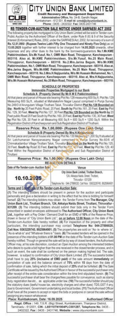 2) All that piece and parcel of house site bearing Plot No. 130 Measuring 1,200 Sq.ft situated at Sri Latchumanan Narayanasamy Nagar comprised in Punja Survey No.60/6 of Chinnakadambur Village Tiruttani Taluk, Tiruvallur Bounded on the North by Plot No. 125. 30 Feet, South by Road 30 Feet. East by Plot No. 131, 40 Foot, West by Plot No. 129, 40 Feet Within the Registration District of Kancheepuram and Sub Registration District of Tiruttani