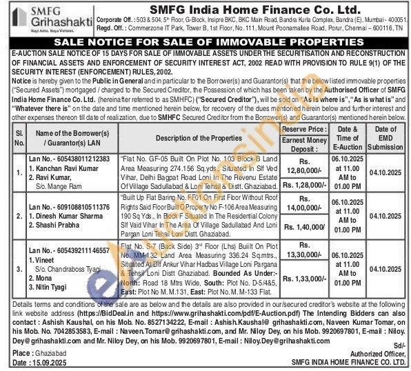Flat No. S-7 (Back Side) 3th Floor (Lhs) Built On Plot No. MM-132 Land Area Measuring 336.24 Sq.mtrs., Situated At Dif Ankur Vihar Hadbas Village Loni Pargana & Tehsil Loni Distt Ghaziabad. Bounded As Under:-North: Road 18 Mtrs Wide, South: Plot No. D-5/485, East: Plot No M. M.131, East: Plot No. M. M-133 Flat.