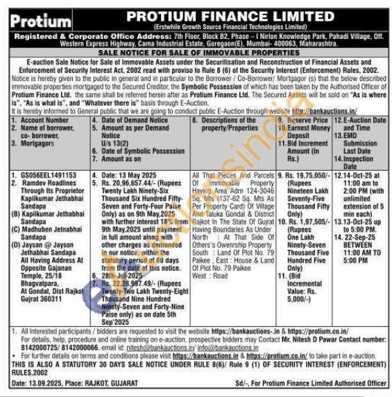 All That Pieces And Parcels Of Immovable Property Having Area Adm 124-3046 So. Mts (137-62 Sq. Mts As Per Property Card) Of Village And Taluka Gondal & District Rajkot In The State Of Gujrat Having Boundaries As Under North At That Side Of Others's Owenrship Property South Land Of Plot No. 79 Paikee, East House & Land Of Plot No. 79 Paikee West Road