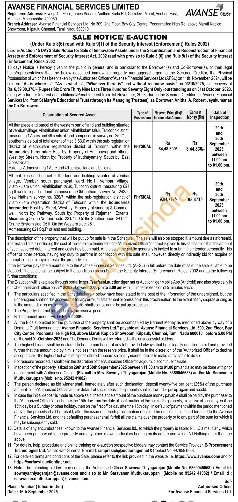 All that piece and parcel of the land and building situated at vembar village, Vembar south panchayat ward No.1. Vembar Village, vilathikulam union, vilathikulam taluk, Tuticorin district measuring 621 sq.ft western part of land comprised in Old natham survey No. 243/2, New Natham survey no. 326/7, within the sub-registration district of vilathikulam registration district of Tuticorin within the boundaries hereunder: East by: Street, West by: Property of singaraj & Common wall, North by: Pathway, South by: Property of Rajamani. Extents: Measuring On the Northern side: 2314 ft. On the Southem side: 241/25 On the Eastern side: 26 ft, On the Westem side: 26 ft. Admeasuring 621 Sq. Ftof land and building.