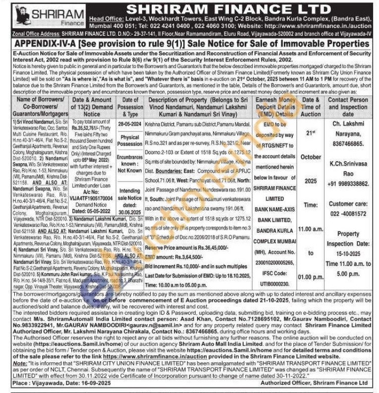 Krishna District, Pamartu sub District, Pamarru Mandal, Nimmakuru Gram panchayat area, Nimmakuru Village, R.S no.321 and as per re-survey, R.S.No.321/2, Near Doorno 2-103 or Extent of 1518 Sq yds or 1275.12 Sq mits of site bounded by: Nimmakuru Village, Krishna Dist. Boundaries: East: Compound wall of APRJC School.71.06 ft. West: Panchayat road.71.06ft, North: Joint Passage of Nandamuri Nandeswara rao. 191.00 ft, South: Joint Passage of Nandamuri venkateswara rao and Nandamuri Lakshmana swamy. 191.06 ft. With in the above an extent of 1518 sq.yds or 1275.12 sq.mits of site only. (this property coresponds to item no.3 of "B" Schedule of Doc.no. 2206/2018 of S.R.O Pamarru