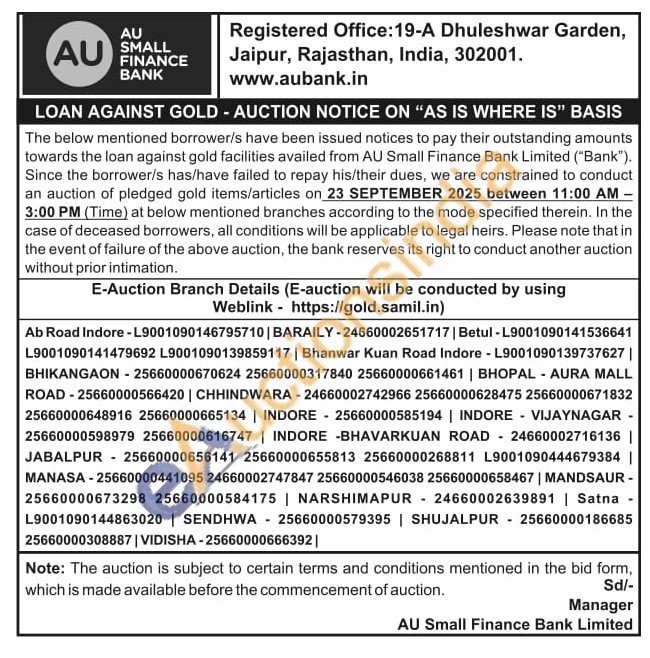 AU Small Finance Bank Gold Auctions Auction in Jaipur