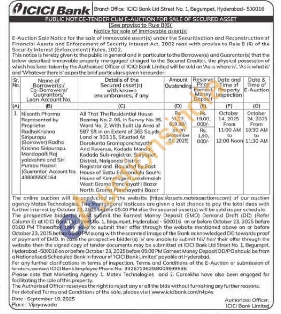 All That The Residential House Bearing No. 2-96, in Survey No. 95, Ward No. 2. With Built Up Area of 587 Sft in an Extent of 363 Sqyds Land or 303.15, Situated At Dorakunta Gramapanchayathi And Revenue, Kodada Mandal, Kodada Sub-registrar, Suryapet District, Nalgonda District Registrar and Bounded By East House of Sattu Edukondalu South House of Kommagani Lakshmaiah West: Gramo Panchayathi Bazar North: Grama Panchayathi Bazar