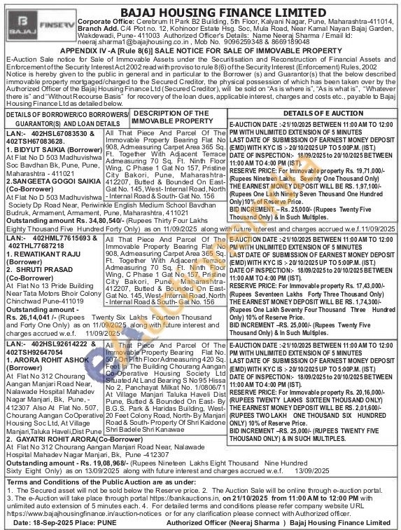 Authorized Officer : Neeraj Sharma Mobile No : 9096259348 / 8669189048